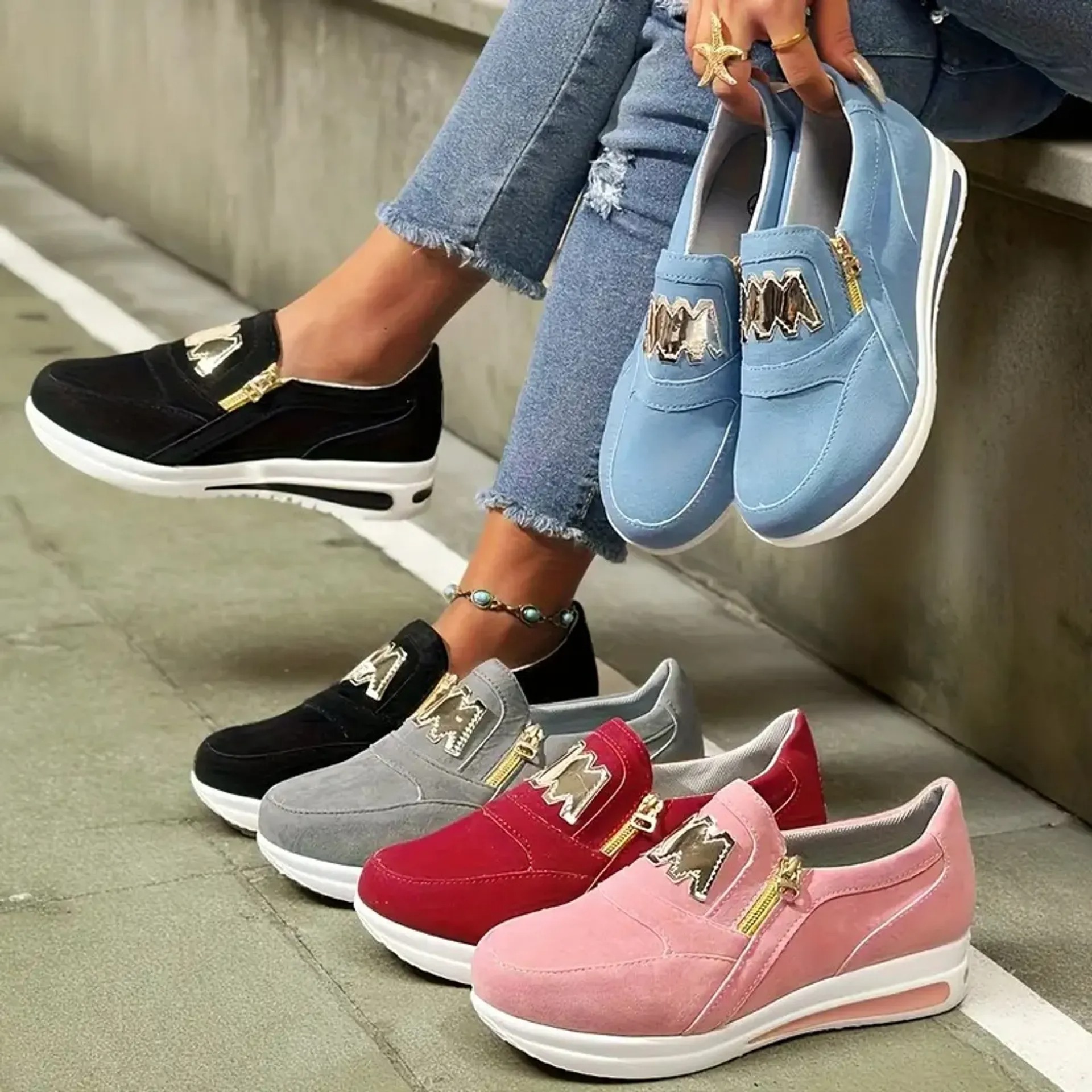 đ„Last Day Promotion 50% OFFđ„Womenâs Comfort Zip Slip-On Sneakers â Lightweight, Breathable & Easy Walk Design